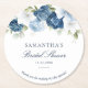 Dessous-de-verre Rond En Papier Lavage à l'eau bleu poussiéreux floral mariage