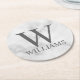 Dessous-de-verre Rond En Papier Marbre blanc Monogramme personnalisé et nom