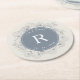 Dessous-de-verre Rond En Papier Mariage de monogramme bleu foncé
