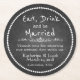 Fun vintage d'inspiration Chalkboard look typographie mariage préférer dessous de verre en papier, avec un périmètre en pointillé blanc et texte blanc lecture manger, boire et être marié. Le texte blanc personnalisé, en bas de la moitié des dessous de verre, est prêt à être personnalisé pour votre mariage.
