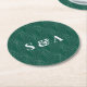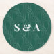 Protect your surfaces in style with the Metropolitan Emerald paper coaster. This sophisticated round coaster features our signature "Emerald Arch" pattern—a deep midnight green Art Deco design with silver-look accents—creating a luxurious resting place for your guests' drinks. With a bold, classic serif monogram centered on the design, these coasters act as functional table decor, adding a layer of architectural elegance to the bar, cocktail tables, and lounge areas.
