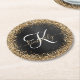 Dessous-de-verre Rond En Papier Monogramme à étincelle noire à Parties scintillant