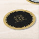 Dessous-de-verre Rond En Papier Monogramme couronne crest or noir mariage