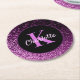 Dessous-de-verre Rond En Papier Monogramme de nom scintillant rose violet