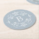 Dessous-de-verre Rond En Papier Monogramme élégant bleu et blanc français