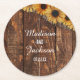 Dessous-de-verre Rond En Papier Monogramme Mariage de tournesol en bois rustique e