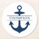 Dessous-de-verre Rond En Papier Nautical Navy Blue Anchor Custom Monogram Name