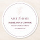 Nettoyer Blanc Rose Simple Leaf Wedding Enregistrer la date Dessous de verre papier rond Un moderne enregistrer la date dans un format de dessous de verre unique conçu sur un arrière - plan blanc propre et doté d'une simple feuille d'orage de poussière rose. "Save the Date..." apparaît au milieu de votre dessous de verre dans un bloc de baies et des lettres de script, avec votre date de mariage et l'emplacement du mariage en dessous. Utilisez la ligne de texte supplémentaire pour partager votre site Web mariage ou des détails supplémentaires. Modifiez la couleur de l'arrière - plan et la police selon votre goût.