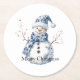 Dessous-de-verre Rond En Papier Noël Chic Bleu Blanc Snowman