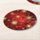 Dessous-de-verre Rond En Papier Noël Golden Snowflakes sur Arrière - plan rouge