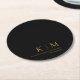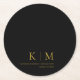 Dessous-de-verre Rond En Papier Noir et or Monogramme-Mariage moderne-