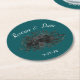 Dessous-de-verre Rond En Papier Noir Turquoise Rose gothique Elégant Mariage