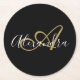 Dessous-de-verre Rond En Papier Nom de script élégant Monogram Black Gold