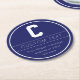Dessous-de-verre Rond En Papier Nom unique & modèle de monogramme | Bleu marine