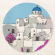 Dessous-de-verre Rond En Papier Oia Santorini Île Grèce Illustration lunaire