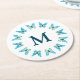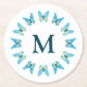 Ce dessous de verre en papier avec un monogramme facile à personnaliser est décoré d'un joli cercle de papillons aux teintes inspirées de la plage. L'image graphique spéciale peut être modifiée pour modifier toutes les couleurs afin de les coordonner avec votre décor ou de faire une déclaration unique.