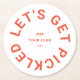 Retro Orange Let's Get Pickled Crest, dessous de verre ronds de papier pickleball. Personnalisez avec l'année, le club de pickleball et la ville. Parfait pour une fête de pickleball, un club de pickleball local ou un baccalauréat sur le thème du pickleball, une bachelorette ou une fête d'anniversaire. Conçu pour correspondre à notre collection Après Pickleball / Lets' Get Pickled.