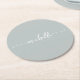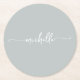 Dessous-de-verre Rond En Papier Sage Vert Monogramme Nom Signature Script