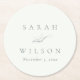 Dessous-de-verre Rond En Papier Simple Chic Élégant Écriture Mariage Noir Blanc