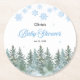 Snowflakes Pine Trees Winter Baby Shower Round Paper Coaster.
