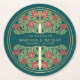 Dessous-de-verre Rond En Papier Teal Royal Medieval Gold Sword Wedding