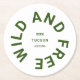 "Wild And Free", des dessous de verre de papier rond sur le thème du camping vert de la forêt. Personnalisez avec l'année de votre séjour et de votre emplacement. Parfait pour la famille aventurière qui s'embarque pour leur joyeux voyage de campeurs ou pour une fête de réunion familiale. Conçu pour correspondre à notre Family Campers Orange & Green Collection.