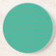 Un Dessous de verre rond en grès ou Bois Mat, avec un motif géométrique en vert émeraude tendance.
