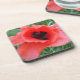 Conception : Ein roter Mohnblumenkelch vor grünem Wiesenhintergrund