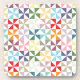 A pattern of geometric pinwheels form a quilt-like tapestry of color. Both moderne et vintage at the Solitime. Versatile and classic.