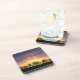 Derrière les silhouettes d'arbres d'hiver nus sans feuilles un navire fantôme navigue à travers les nuages d'un ciel de coucher de soleil.