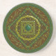 Ce mandala sur le thème du Taurus comporte une pierre émeraude entourée du symbole du signe, de la constellation et du symbole alchimique de la Terre parmi les fibres et les tissages.