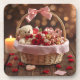 Dessous-de-verre Teddy Rose Basket Romantic Valentine Heart Drink