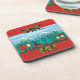 Joyeux calandre de train de Noël avec l'arrière - plan rouge et le petit chien écossais à bord du train.