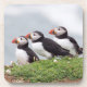 Trois macareux dans une rangée sur la falaise complètent sur l'île de Skomer.