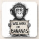 Dessous-de-verre Will Work for Bananas - Humorous Monkey Sketch