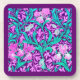 Dessous de verre dans un William Morris, Art Nouveau, imprimé textile d'iris et de feuilles, numériquement rehaussé et coloré, dans une orchidée douce et turquoise, sur un profond améthyste violet arrière - plan