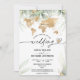 Vous prévoyez un mariage dans une destination romantique ? Invitez vos invités avec cette belle invitation avec une carte du monde en or sur fond floral et votre destination personnalisée marquée avec le cœur amovible.