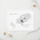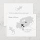 Carte de save the date élégante pour un mariage à destination pour les couples se mariant à Ibiza. Avec des symboles de lézard gecko, une carte en silhouette grise argentée et des cœurs d'amour blancs. Très joli et facile à personnaliser avec vos détails personnels.