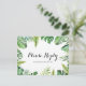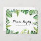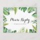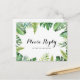 Cette carte postale de choix de menu tropical de destination est parfaite pour un mariage de verdure. Le design se compose de palmiers verts aquarelés peints à la main et de feuilles de bananes soigneusement arrangés en de beaux bouquets.
