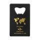 A black and gold destination wedding passport design with gold world map, airplane and travel elements. This design is ideal for all Spring, Summer, Fall and Winter destination weddings. An elegant black and gold wedding travel design with passport layout, world map and custom couple photo. A modern destination wedding bottle opener favor design with elegant elements. Matching wedding invitations and other stationery items are also available.