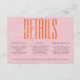Personnalisez cette carte de détails de mariage moderne et colorée, mais simple et unique, rose et orange, avec une typographie "DETAILS" en gras et en grand format sur le devant, avec des détails en écriture ivoire et un titre et une description minimalistes pour les 3 détails que vous souhaitez que vos invités connaissent. Besoin de plus de place ? Ajoutez plus de détails au verso ! Ajoutez facilement votre propre texte pour la rendre unique ! Faites défiler vers le haut pour trouver la collection de papeterie assortie. Les demandes de conception personnalisées, les ajouts de produits à la collection et les questions sur les modèles sont toujours les bienvenus - cliquez sur le bouton "message", ou envoyez un e-mail directement : contact@figandlilyco.com. La conception est créée avec amour par Fig and Lily Studios ♥ Envoi de bénédictions et remerciements pour être ici avec nous !