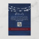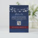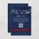 Elégante carte de boîtier bleu marine mariage avec lumières à cordes blanches et espace pour des détails personnalisés et un code QR. Dirigez facilement les invités vers votre site Web mariage, la page RSVP ou des informations importantes comme les directions et les hébergements de la réception. La bande bordeaux apporte une touche rustique et romantique. Correspond aux suites mariage marine et bordeaux.