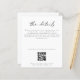 Un rapport qualité-prix BUDGET alternative sur une taille plus petite 4,5 x 5,6" semi-brillant poids 110lbs, qui est d'une épaisseur similaire à une carte postale (cependant ne convient pas à l'utilisation comme carte postale.) VEUILLEZ NOTER qu'il y a UN par feuille. Détails sur le Mariage budgétaire Boîtier de script de code QR. Faites savoir à vos invités des détails tels que l'itinéraire et les informations d'hébergement pour votre mariage lorsque vous envoyez leurs invitations. Ce design élégant a mis en place une grande typographie stylisée pour l'en-tête Les détails et le reste du texte peuvent être facilement personnalisées à vos mots avec votre code QR de site Web. Vous pouvez supprimer le code QR si vous le souhaitez via custom. Vous pouvez choisir n'importe quelle couleur de votre choix pour le texte et les couleurs arrière - plans des deux côtés via l'option customiser plus loin.