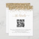 Un rapport qualité/prix BUDGET alternative sur une taille 4.5 x 5.6" semi-brillant poids 110lbs, qui est d'une épaisseur similaire à une carte postale (cependant ne convient pas à utiliser comme carte postale.) VEUILLEZ NOTER qu'il y a UN invitation par feuille. Budget Gold Parties scintillant QR Code Détails du Mariage. Une bordure de parties scintillant en haut sur les deux côtés avec un script élégant avec des swashes pour l'en-tête. Remplacez votre code QR par votre site Web mariage pour que vos invités puissent voir tous les détails dont ils ont besoin. Pour créer un code QR, recherchez en ligne "générer un code QR"