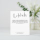 Élégant Script Détails Mariage Enclôture.Un prix économique SMALLER 4.5" x 5.6" alternative. Disponible dans un STOCK CARTE SEMI GLOSS 110 lb qui est l'option par défaut (recommandé pour les invitations), OU un STOCK PAPIER THINNER SATIN FINISH 80 lb (idéal pour les boîtiers). Les enveloppes sont en option et légèrement plus grandes que la taille de la carte. Faites savoir à vos invités des détails tels que l'itinéraire et les informations d'hébergement pour votre mariage lorsque vous envoyez leurs invitations. Ce design élégant a mis en calligraphie élégante pour la rubrique Les détails et le reste du texte peuvent être facilement personnalisées à vos mots. Vous pouvez choisir n'importe quelle couleur de votre choix pour le texte et les couleurs arrière - plans des deux côtés via l'option customiser plus loin.