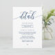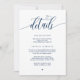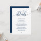 Belle calligraphie moderne, Détails Mariage Carte fermée, dans Classy bleu marine thème. Vous pouvez customiser la carte, pour inclure les détails de la réception de mariage, le parking, les navettes, l'hébergement et autres.