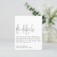 Script noir blanc Détails du Mariage Boîtier. Un prix économique PETIT 4,5 po x 5,6 po alternatif. Disponible dans un STOCK SEMI-GLOSS 110 lb CARD qui est l'option par défaut (plus épais pour les invitations), OU un STOCK SATIN FINISH 80 lb THINNER PAPER (idéal pour les boîtiers). Les enveloppes sont en option et légèrement plus grandes que la taille de la carte. L'en-tête est dans un élégant style d'écriture avec les détails en dessous et beaucoup d'espace blanc sur une forme carré pour un style contemporain. Personnalisez facilement avec vos propres détails.