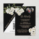 Mariage floral noir et blanc unique et romantique Détails Carte de boîtier. Le lettrage doré et les touches de calligraphie accompagnent parfaitement les belles fleurs et la belle photo. Pour toute question de conception ou personnalisation supplémentaire et / ou éléments correspondants, envoyez un conversation ou un courriel à charmdesignstudio@rcn.com et nous serons heureux de vous aider.