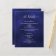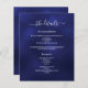 Un programme de mariage moderne et élégant / détails / chronologie. Un arrière - plan bleu marine. La couleur bleue est inégale. Personnalisez et ajoutez vos noms et les détails du mariage. Lettres de couleur blanche. Texte des deux côtés. 1 feuille = 1 programme imprimé de bord en bord.