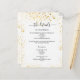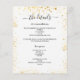 Un mariage moderne, élégant détails / programme / chronologie. Un arrière - plan blanc décoré de parties scintillant en faux or brille. Personnalisez et ajoutez vos noms et les détails du mariage. Lettres de couleur noire. Texte des deux côtés. 1 feuille = 1 programme imprimé de bord en bord.